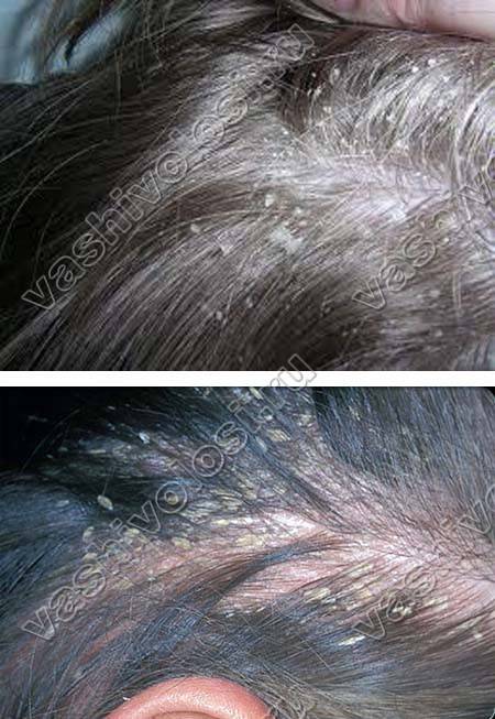 Хлопья перхоти крупнее, могут иметь желтый оттенок или выглядеть маслянистыми. Хотя и перхоть, и сухость кожи головы, как правило, возникают и исчезают, перхоть, вызванная грибковой инфекцией, вряд ли исчезнет без лечения. Однако сухость кожи головы может улучшиться при менее частом мытье шампунем.