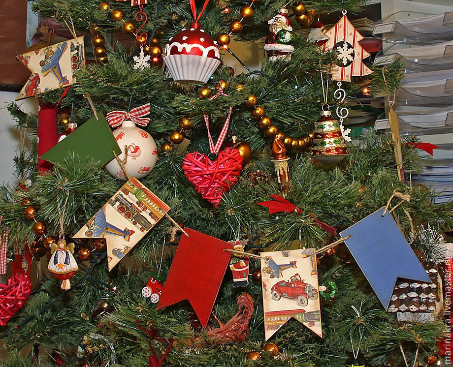 2. Размещение больших украшений в верхней части дерева