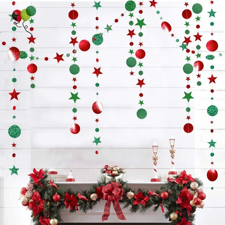 Красные, зеленые и золотые украшения нанизаны повсюду для забавного прикосновения, которое легко сочетается с другими праздничными украшениями.