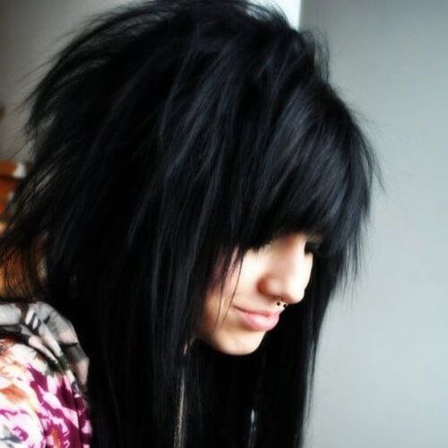 Еще одна классная прическа в стиле эмо для девочек-подростков. Подстригите волосы слоями до скул поверх длинных волос, чтобы сделать лицо более привлекательным без ущерба для общей длины локонов. Если у вас еще нет волос до талии, вы можете сделать наращивание.
