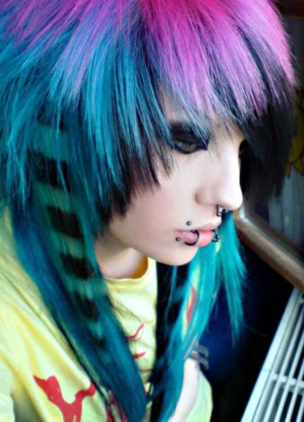 Если одного цвета недостаточно, добавьте к своей эмо-прическе отдельные полосы разных цветов. Если вы хотите, чтобы ваши цвета действительно выделялись, используйте базовый слой блонд.