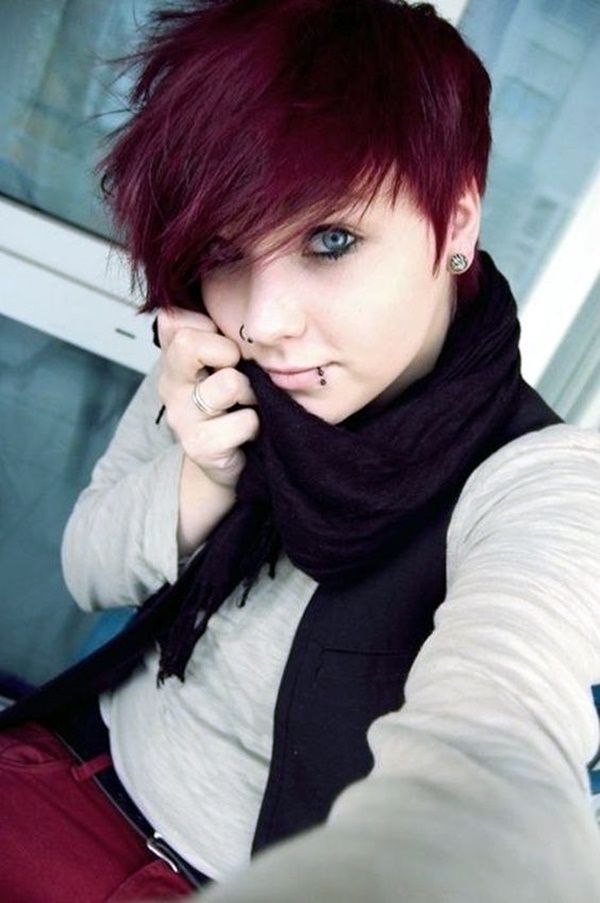 Эта эмо-прическа выглядит блестяще, если у вас есть несколько проколов в ушах, которыми вы хотите похвастаться.