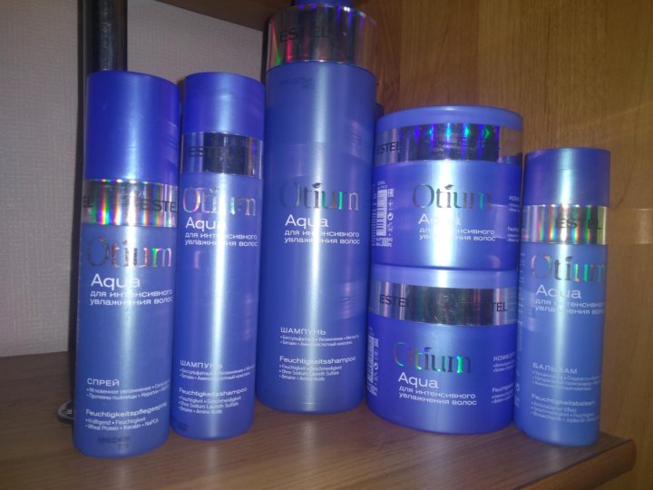 Для себя я часто выбираю увлажняющую, или, как её часто называют, «голубую» серию от Estel — Otium Aqua.