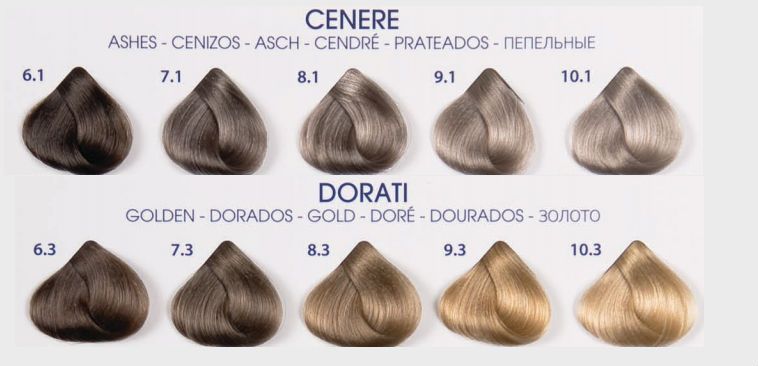 Перламутр в такой палитре полностью нейтрализует желтый пигмент, ирис придает яркость, а серебристый пигмент закрепляет результат. Именно эти три компонента позволяют в итоге получить идеальный холодный тон.
