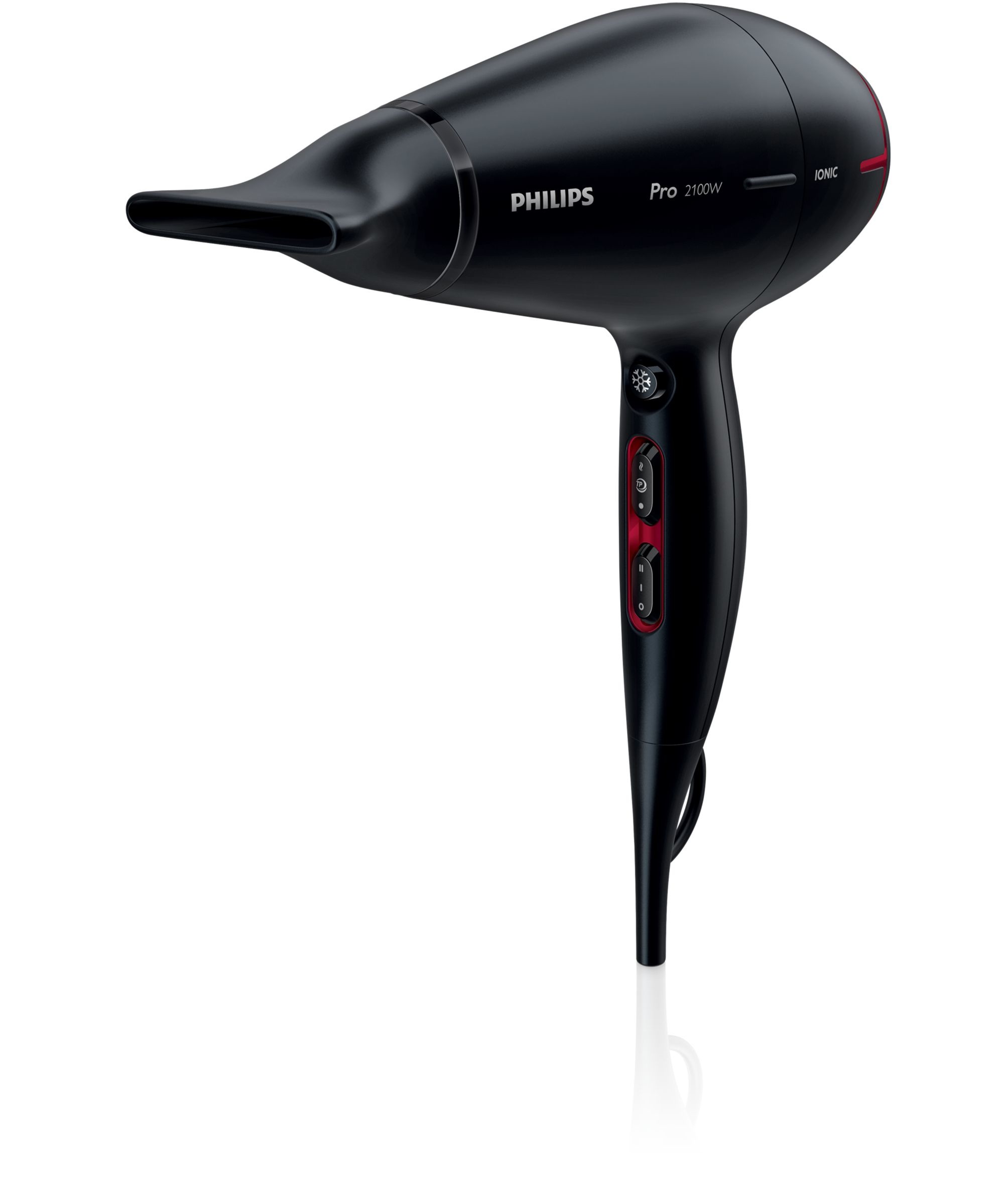 Относительно легкий, высокой мощности (2300 Вт), ионное кондиционирование и керамическое покрытие, поставляется с концентратором и диффузором.Bosch ProSalon Professional Фен для волос PHD9760