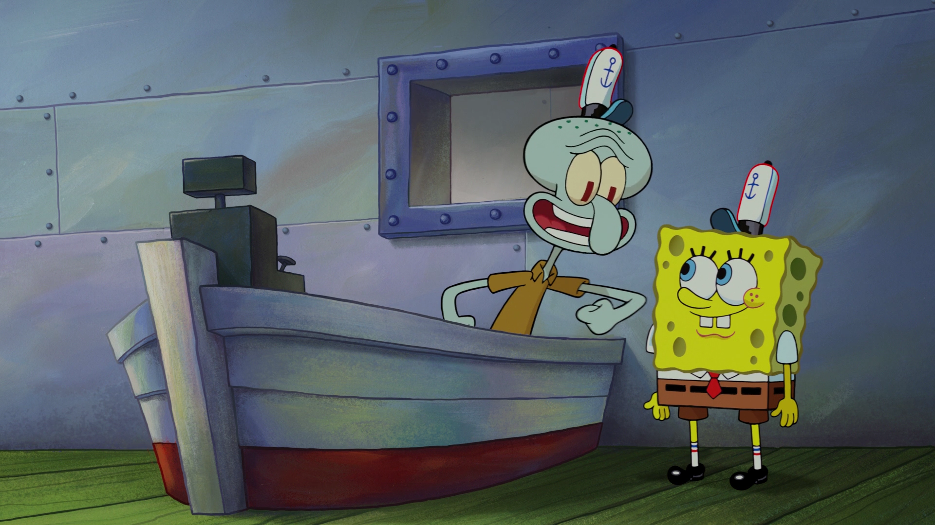 Боб и Крабсбургер обнялись. SpongeBob and Krabsburger hugged.