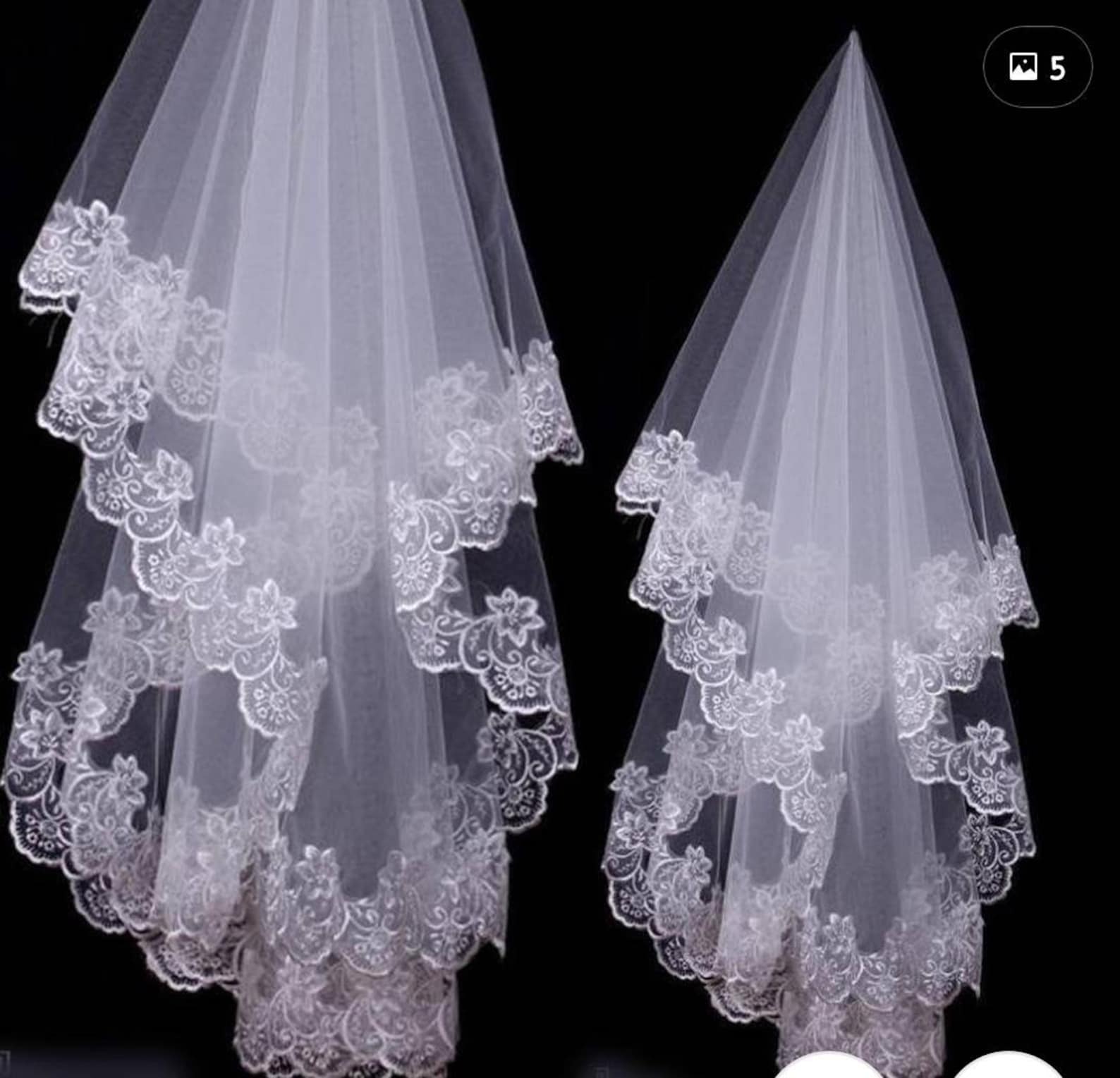 Длина такой фаты — порядка 80 см. Края такой ее обычно отделаны кружевом, что придает дополнительной элегантности.
