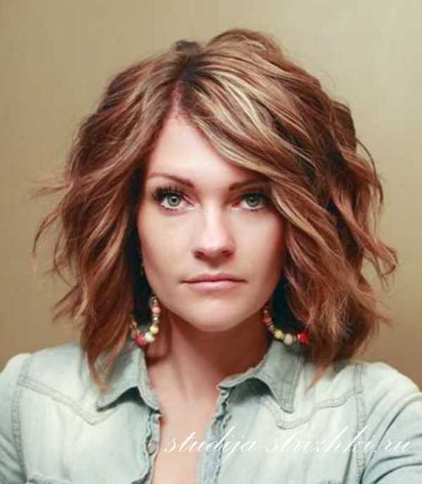 Обладательницы круглого личика отличаются более широкими скулами и наличием щечек. С помощью стрижки нам необходимо спрятать излишнюю округлость и слегка вытянуть лицо. Для этого идеально подойдет удлиненное и прямое каре до плеч без челки. Пробор лучше выбрать боковой или косой. А объем следует начинать от макушки и уходить внизу к «рваным» кончикам. Каре лучше не крутить на плойку, гораздо удачнее будут смотреться прямые волосы. Асимметричное удлиненное каре также будет превосходно подчеркивать прелести лица.