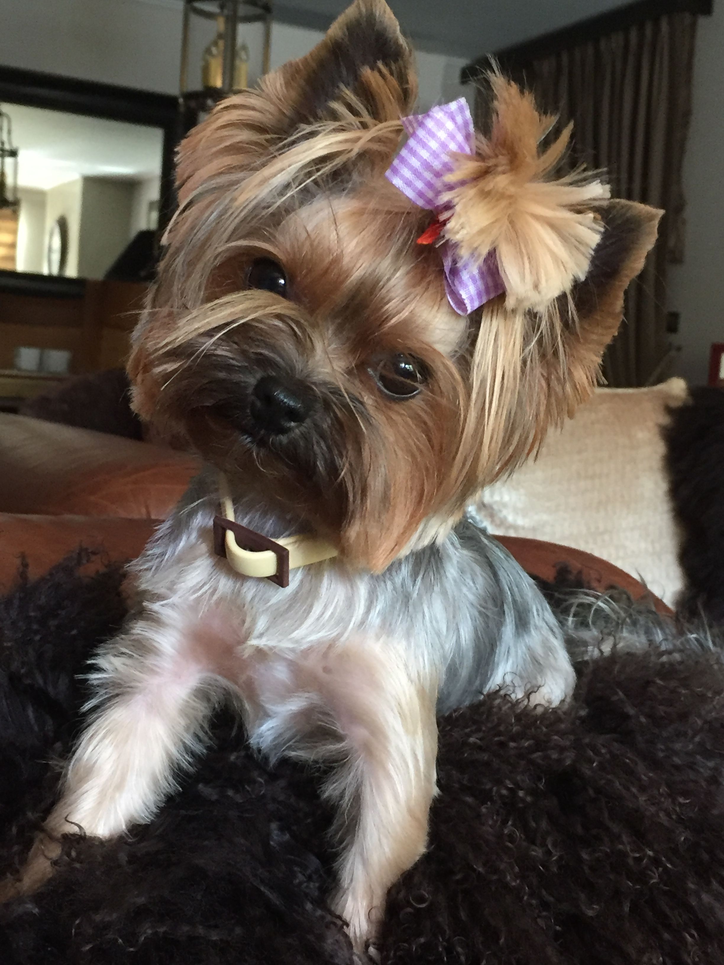 - Стрижка. Собак выставочного типа следует готовить с трехмесячного возраста. Раз в несколько месяцев сбривают шерсть на спине, грудке, боках, голове и хвосте питомца. Используйте ножницы, чтобы обрезать конец юбки, усы, брови и бороду. Так как в 3 месяца у терьера формируется взрослая мягкая шерсть, животное следует приступить к стрижке.