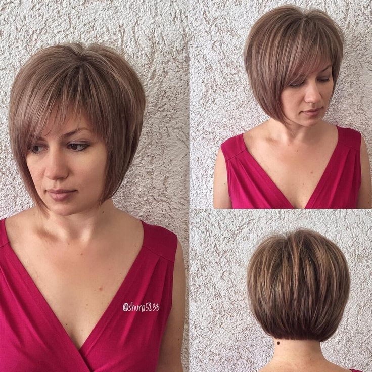 Целый ряд коротких многослойных причесок, уложенных наружу к затылку, — это вечная стрижка для женщин старшего возраста с тонкими волосами. Слои стрижки выглядят так, как будто они перевернуты, и придают объем завершенному виду.