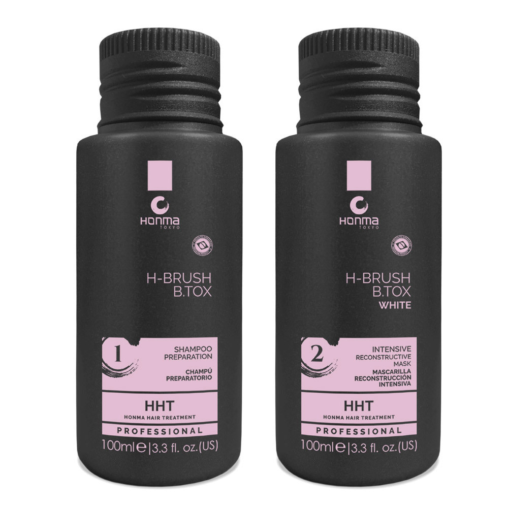 Линия Honma Tokyo H-Brush включает в себя подготавливающий шампунь (шаг 1) и интенсивный реконструктор (шаг 2). В состав средств также входят гидролизированный кератин и аминокислоты, оказывающие кондиционирующее действие. С синим пигментом ! Для блондинок , избавляет от желтизны волос! Использовала по 20 мл. Один раз!