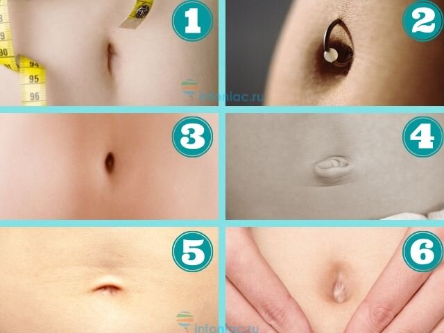 Пупок — это первый рубец на теле человека, который остается после отпадения пуповины. Интересно, что форма пупка у каждого человека уникальна, как отпечатки пальцев. Выделяют следующие основные типы пупков: