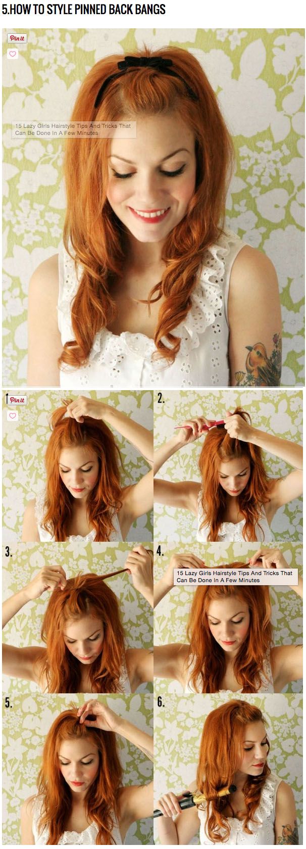 Если челка пока недостаточно длинная для такой прически, подберите обруч в виде косы и любой другой красивый ободок и спрячьте челку под ним.