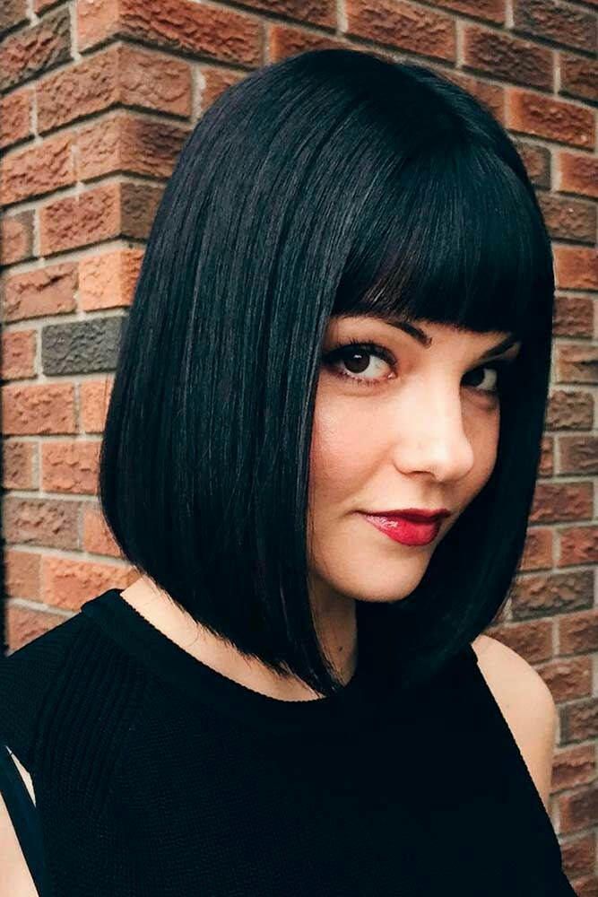 По желанию, боб-каре можно дополнить красивой челкой. Выбирайте асимметричный вариант, чтобы сделать акцент на глазах и немного освежить образ. Градуированная челка поможет визуально вытянуть лицо и сделать его более пропорциональным. В свою очередь, прямая челка с ровным срезом добавит образу некой строгости.