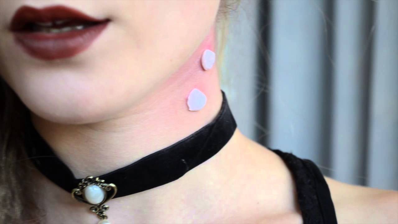 Если вы хотите более точно передать всю эффектность образа вампира, обратите внимание на детали грима. Так, предлагаем вам сделать на шее имитацию следов от укуса. Поверьте, такой эффект макияжа не останется без внимания на любой костюмированной вечеринке! Как это сделать? Смотрите видеоролик ниже: