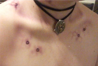 А второй клип покажет вам, как сделать укусы с помощью специального воска для создания рубцов. Обратите внимание, что руки перед нанесением воска на кожу надо тщательно протереть от остатков косметики, иначе воск не прилипнет. И что края надо тщательно втереть в кожу.