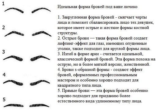 Подбирая брови, их правильную форму и длину, по типу лица, нужно учитывать индивидуальность человека. Правильно подобранными прямыми бровями или изогнутыми, с мягким или острым углом, закругленными можно усилить привлекательность лица. В арсенале визажиста есть еще ширина бровей и высота арки.