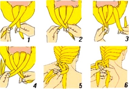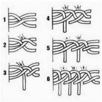 - Крайний левый пучок заводится на средний и пропускается под крайний правый.