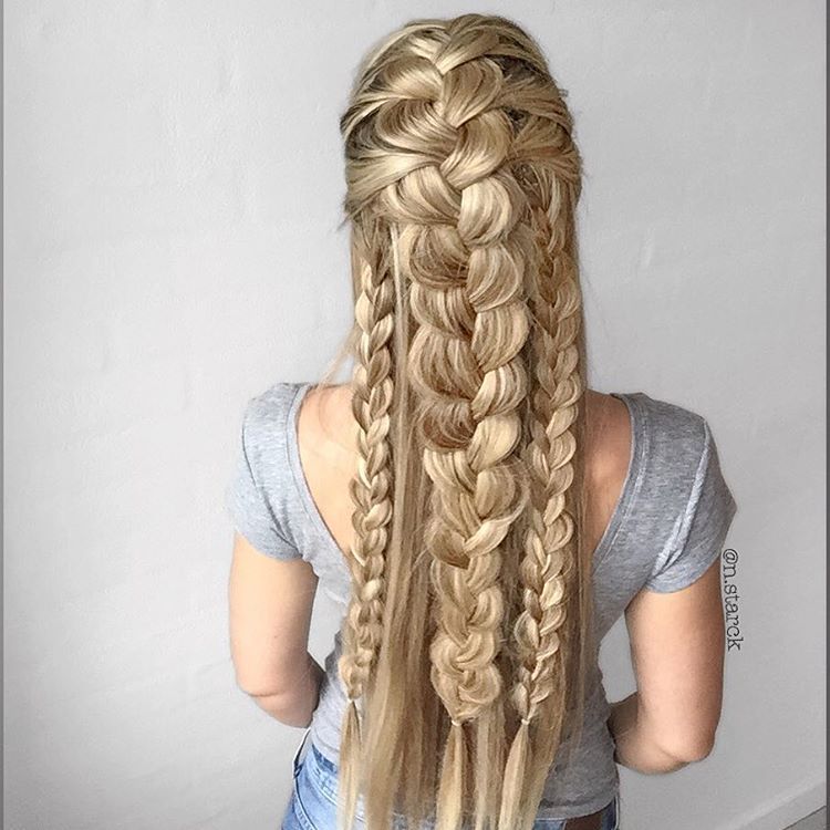 Эта двойная коса выглядит невероятно и отлично подойдет женщинам всех возрастов. Для праздников она, конечно, простовата, но на каждый день вполне подойдет.