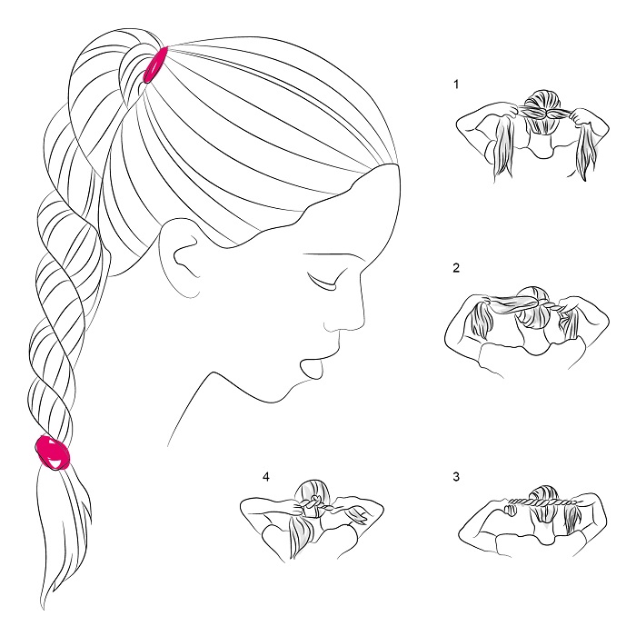 Оберните получившийся жгут вокруг косы и закрепите внизу тонкой резинкой без декора.