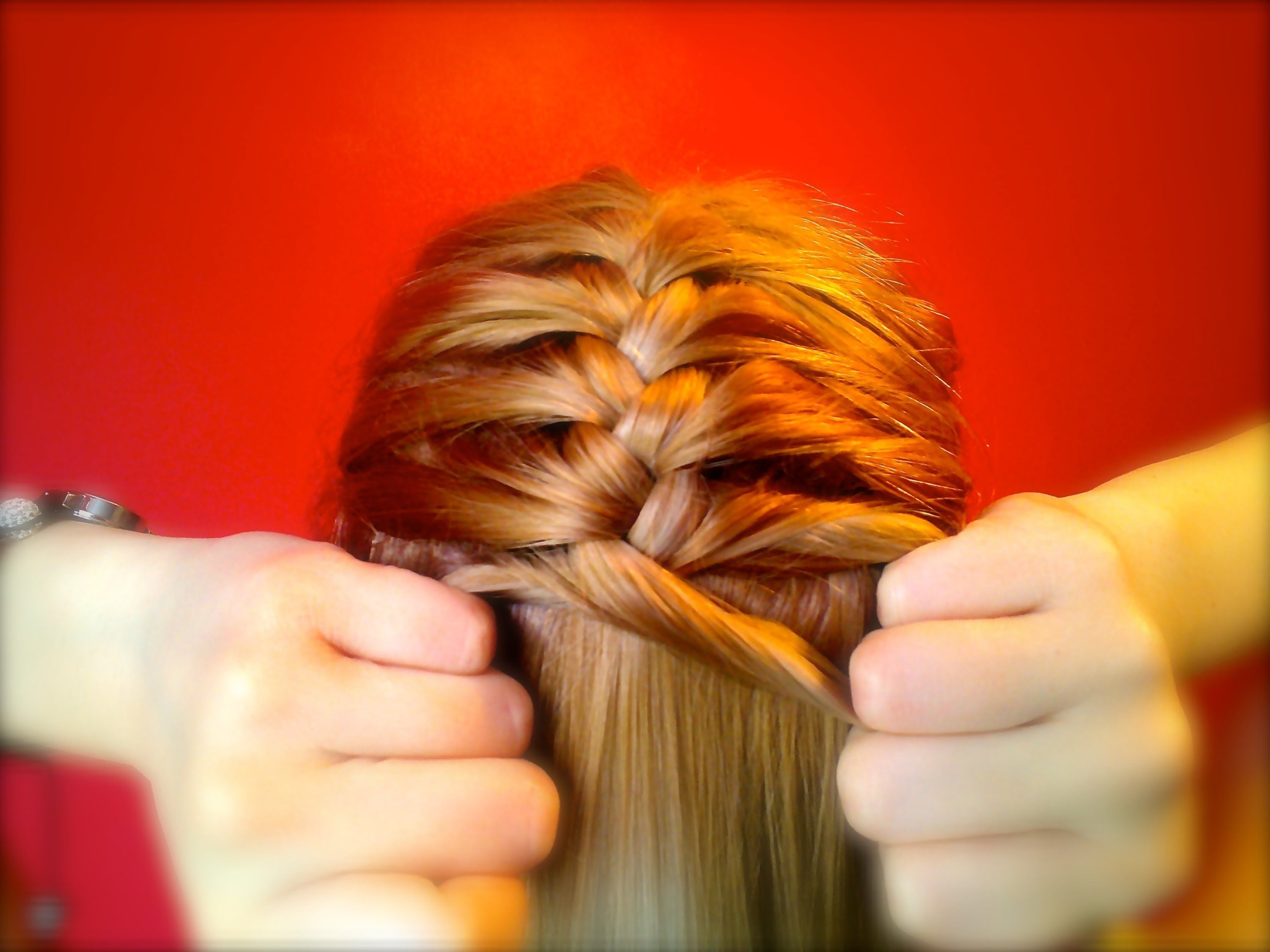 Думайте об этом как о двух хвостиках, по одному в каждой руке. Затем просто перекрестите небольшую прядь волос с одной стороны на другую .