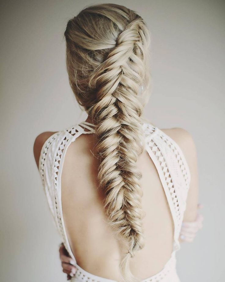 Как правило, плетется рыбий хвост на прямых длинных волосах, но заплести косу рыбий хвост можно на тонких, на толстых, на густых, на редких, на вьющихся волосах, а также на волосах средней длины. Очень красивый рыбий хвост получается на волосах с мелированием.