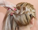 В этой прическе необходимо двигаться по дуге. Прядки берутся не с правого края, а с макушки. - Постепенно продвигаясь, доплести косу до правого края (уха).