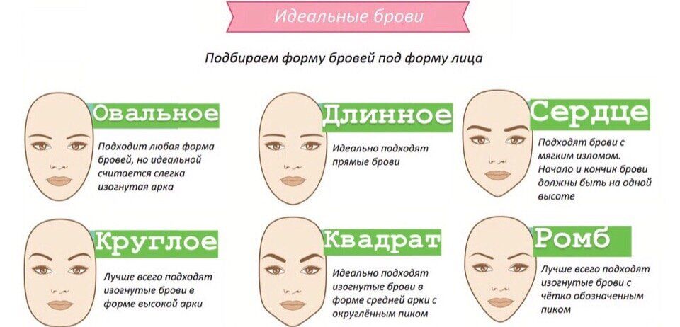 Выбирая форму бровей, часто хочется следовать модным трендам, но эксперты советуют полагаться в этом вопросе, в первую очередь, на естественные контуры бровей и овал лица. Существует несколько основных типов лиц.