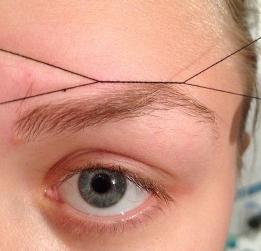 Получится линия, на пересечении которой и будет расположена оптимальная точка начала бровной дуги.