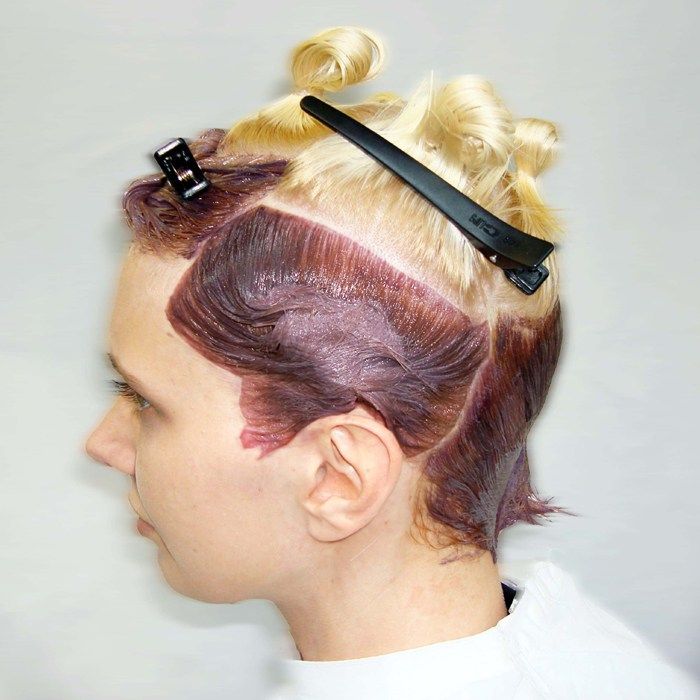 Советуем начинать красить волосы с теменной части головы. А также в области затылка. Здесь волосы окрашиваются более медленно.