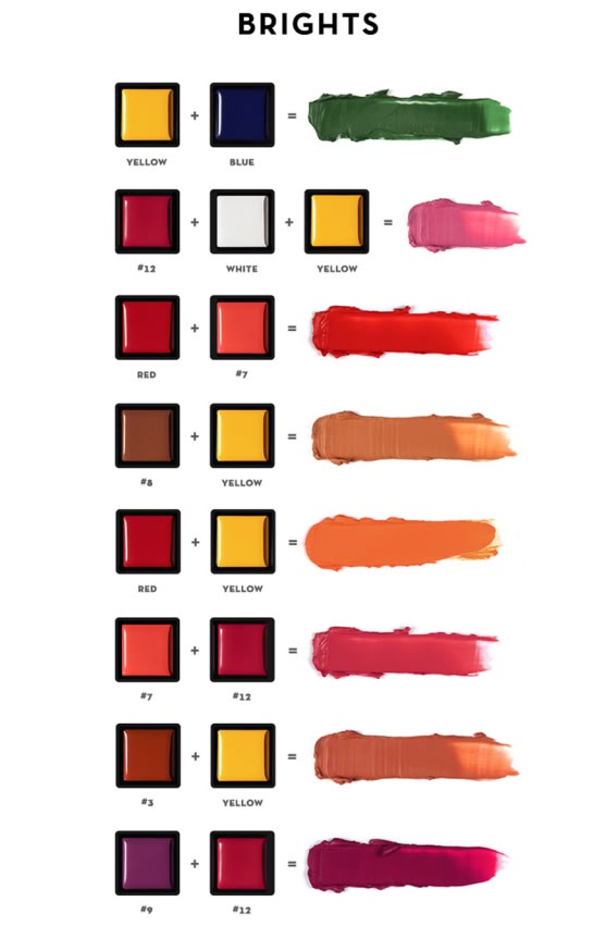 При желании можно использовать только один. В общем, холодные желтые (лимонного цвета) дают более яркие смеси, а теплые желтые — более приглушенные.