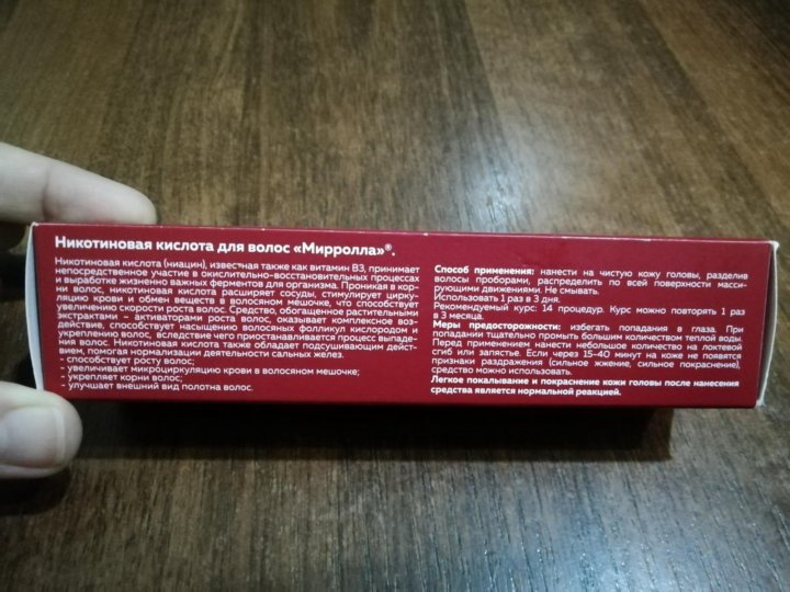 При нанесении никотиновой кислоты на кожу головы, она дает согревающий эффект. «Задремавшие» из-за стресса или диеты волосяные луковицы можно отлично простимулировать.