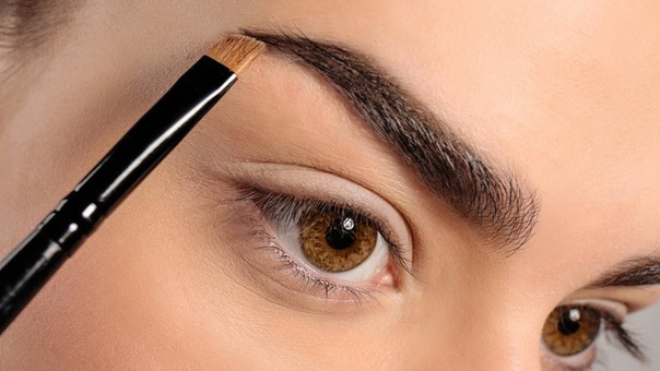 - Держите под рукой угловую кисть: Окуните кисть в средство для бровей на основе пудры (в крайнем случае подойдет простая тени для век) и обведите бровь так же, как и карандашом для бровей.