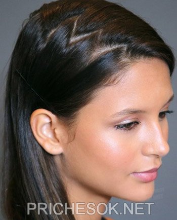 - Зигзагообразный пробор потрясающе смотрится с парой французских кос или хвостиков.