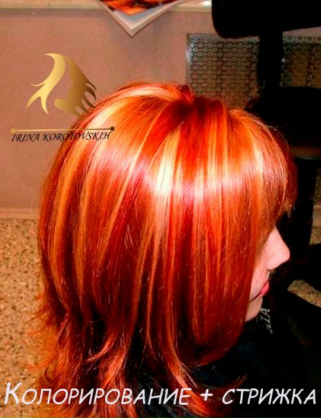 На русоволосых девушках очень интересно смотрится колорирование в рыжевато-медных тонах.