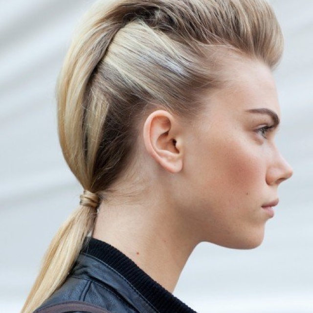 Такой хвост делает бунтарский тип, сохраняя при этом исключительную женственность образа. Вы можете сделать эту прическу на работу, смешав ее с повседневным нарядом.