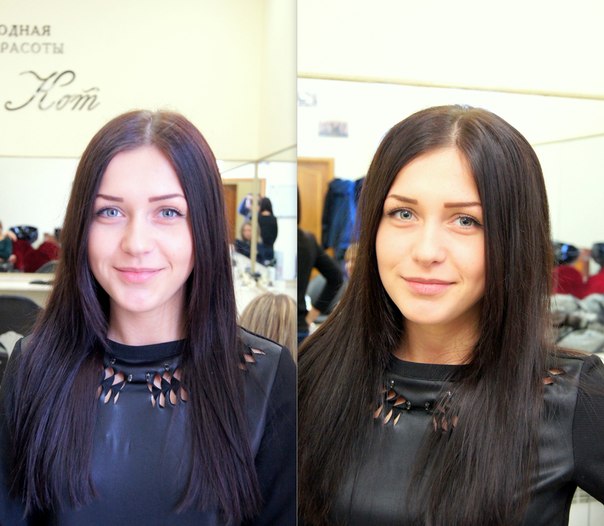 Слава: У меня такой же тип волос, так что я прекрасно понимаю Лену. Когда выходишь на улицу, они начинают пушиться. В прикорневой зоне это ок (объем же!), а по длине создает впечатление неопрятности.