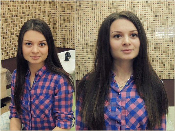 Объем увеличивается, держится в среднем полгода. Это щадящий способ, в составе используется цистиамин, безвредный для шевелюры. Однако это не подойдет для обладательниц короткой стрижки, так как итог невозможно предугадать.