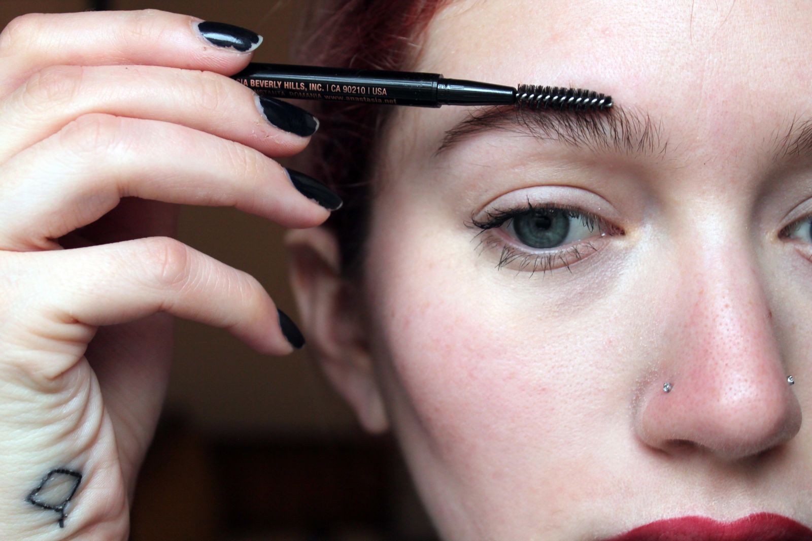 Чтобы определить точные места, где ваши брови должны заканчиваться и начинаться, поднесите карандаш прямо к носу, затем наклоните его к внешнему уголку глаза.