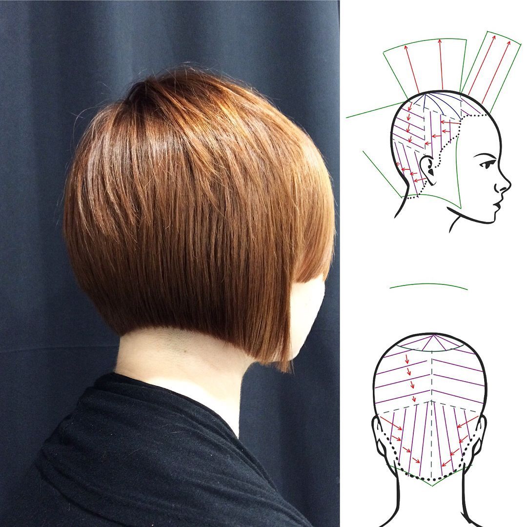 Учебник по вырезанию перевернутого боба. Это основные характеристики перевернутого боба: более короткая спина и все более длинные стороны, обрамляющие лицо.