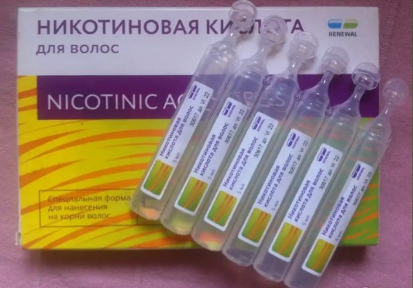 Этот способ работает по аналогии с использованием ампульной косметики, только в кожу головы втираете никотиновую кислоту.
