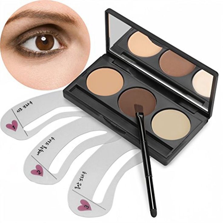 ruКомпактный набор, который состоит из двух оттенков, воска, кисточки и щеточки. Нанесите более светлые тени на первую часть брови, а темные – на хвостик. Граница должна проходить посередине: тщательно растушуйте переход с помощью кисточки. Расчешите брови и закрепите их воском. Эти тени стойкие и продержатся весь день. Также с их помощью можно создать широкие брови.