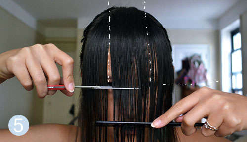 «Просто высушите их сверху, используя фен, направленный вниз, и грубо отделив волосы пальцами. После этого просто уберите волосы, которые не попали в прядь челки, и работайте только с челкой». Не сходите с ума, потому что пути назад нет!