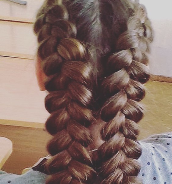 - Завяжите косу резинкой и растяните рыбий хвост руками.