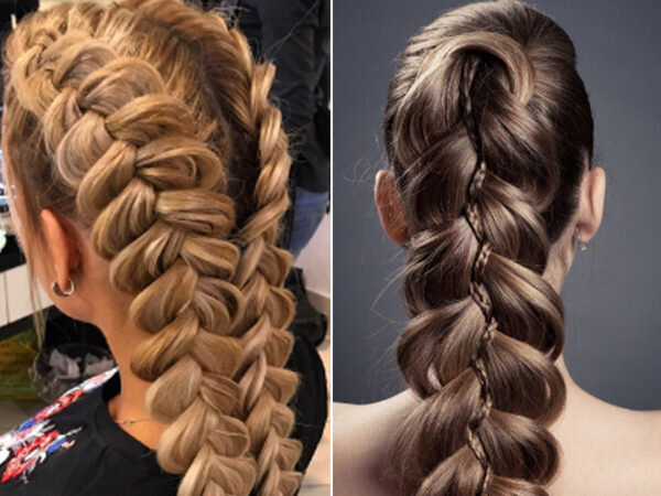 Плавно уложенные прически уже не в моде, укладка волосы к прическе уходит в прошлое, а на пике популярности — французская коса наоборот или перевернутая коса.