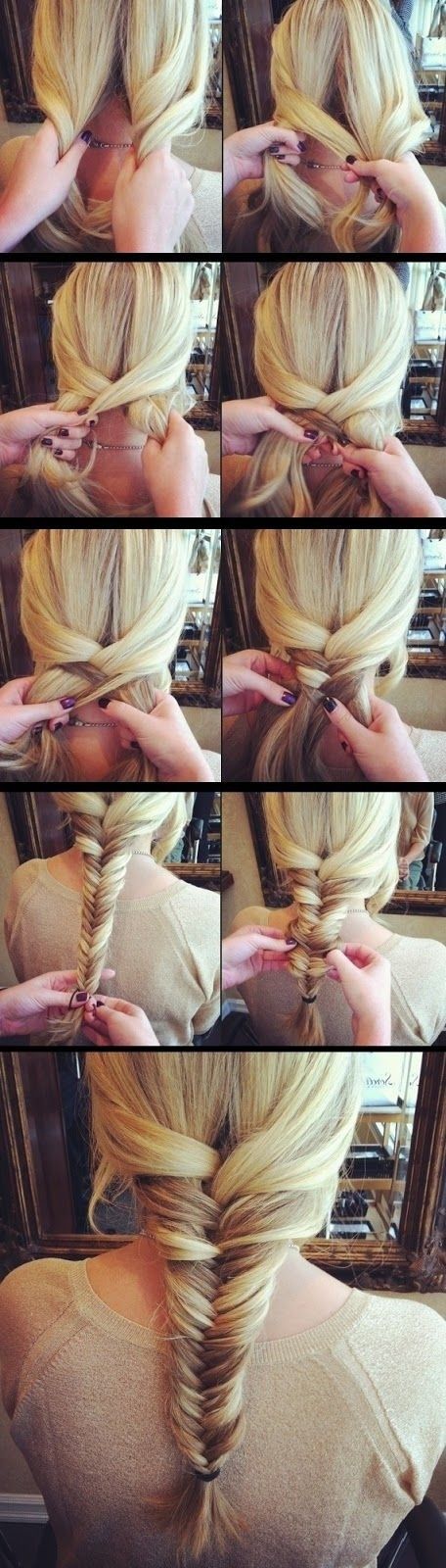 — Продолжаем, пока не будут сплетены все волосы. После этого перейдите к простой традиционной косе и закрепите ее конец.