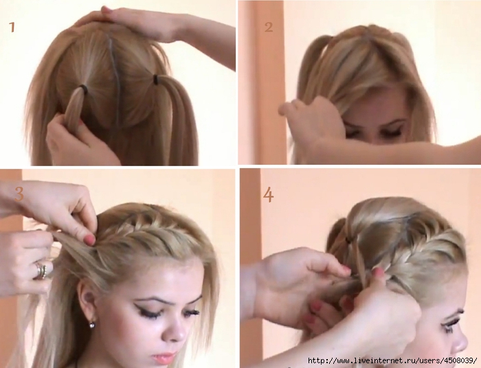 - Согласно предыдущим шагам, плетут косички слева и справа.