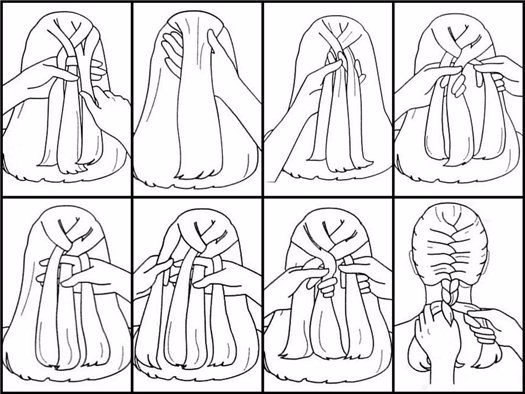 5) Все волосы должны входить в косу. Когда они закончили, они складываются, как обычная коса, или собираются в хвост.
