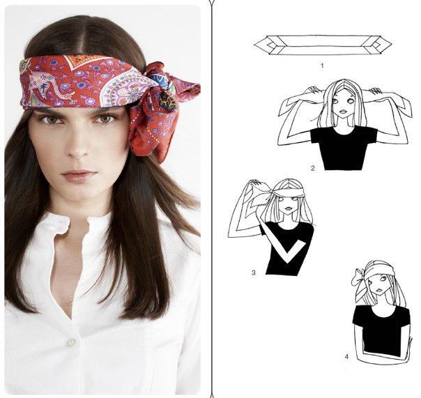 Как носить шелковый платок в волосах