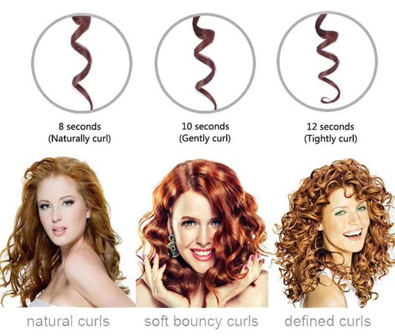 Пузырьковая форма гарантирует равномерную завивку волос. Начните с нанесения термозащитного средства и разделите волосы на небольшие пряди. Когда закончите, переверните цилиндр вверх дном и оберните прядь волос, начиная с корня. Задержитесь на 10-20 секунд и медленно распутайте для легкого выпуска.